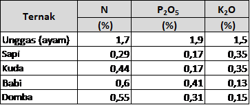 Tabel 2. Unsur hara pada pupuk kandang dalam persen (%)