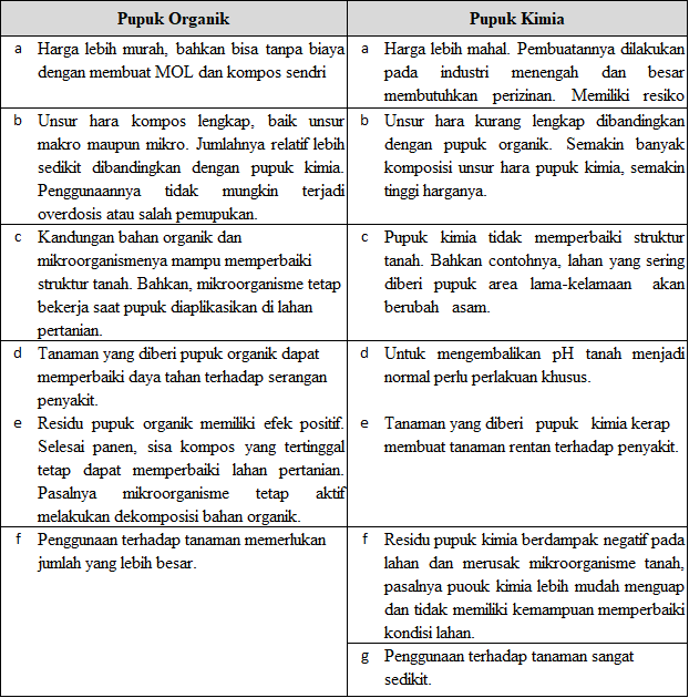 Tabel 1. Perbedaan pupuk organik dan pupuk kimia