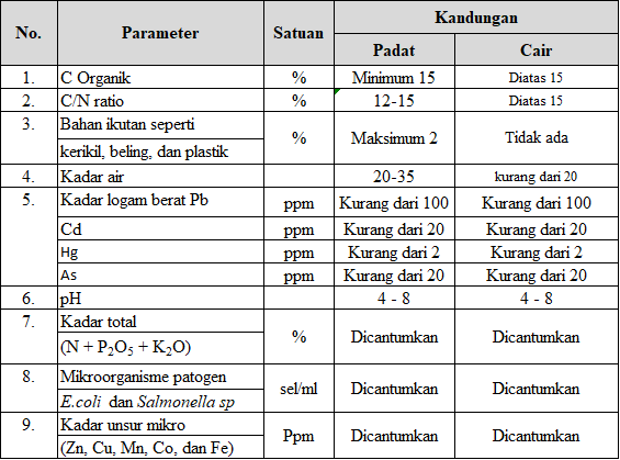 Tabel 3. Standar Kualitas Pupuk Organik Menurut Kementerian Pertanian